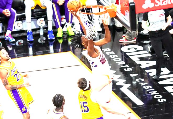 防守端,斯瑪特同樣沒能展現(xiàn)出DPOY的水準。除了那次造進攻犯規(guī),他在對位太陽球員時,既沒有完成搶斷,也沒有貢獻封蓋,籃板保護更是形同虛設。要知道,湖人引進斯瑪特的核心目的之一,就是希望他能加強球隊的外線防守強度,成為后場的“防守大閘”,可這場比賽,斯瑪特在防守端的存在感甚至不如湖人的年輕替補球員,這樣的表現(xiàn)顯然無法讓球隊滿意。